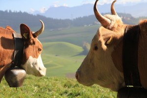 vacas suíças com chifres