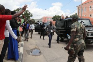 Marcelo a caminho do Lubango, no estribo do carro blindado